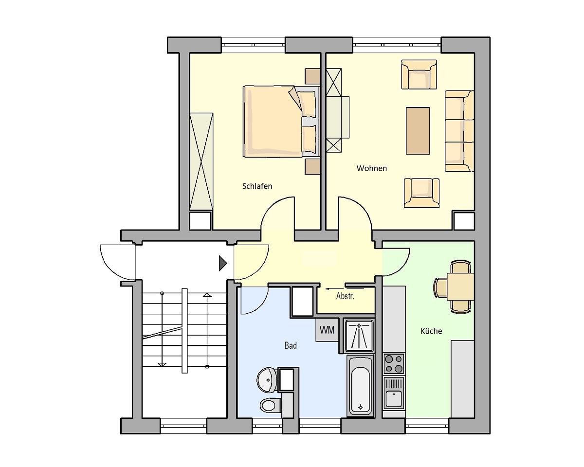 2-Raum-Wohnung mit Wanne und Dusche im EG